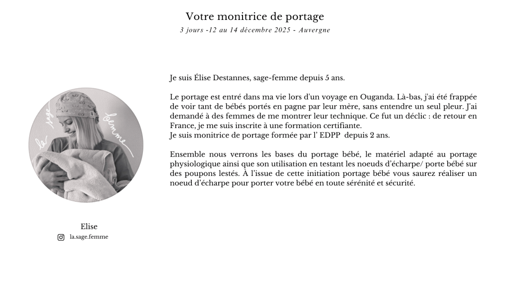 avec la présence exceptionnelle d’Elise Destannes, monitrice de portage @la.sage.femme