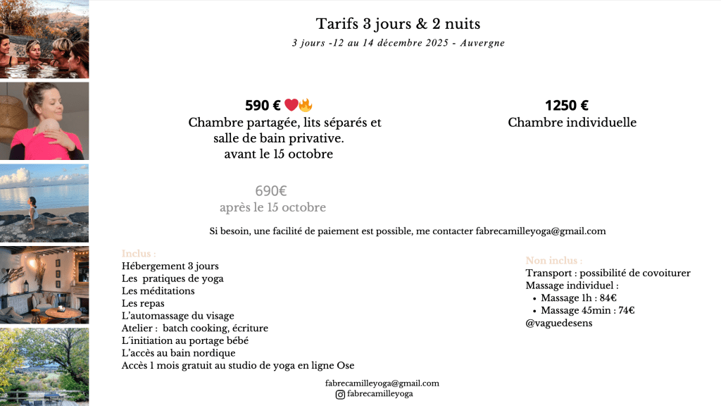 Si besoin, une facilité de paiement est possible, me contacter fabrecamilleyoga@gmail.com