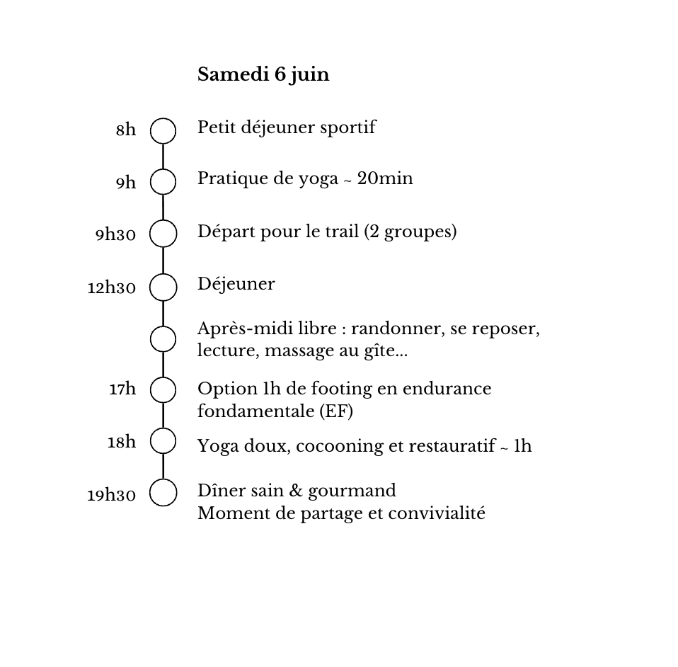 Cette évasion en pleine nature s’adresse à tous les niveaux. Les débutants en course à pied et en yoga sont les bienvenus. Des groupes de niveaux seront proposés pour le trail.