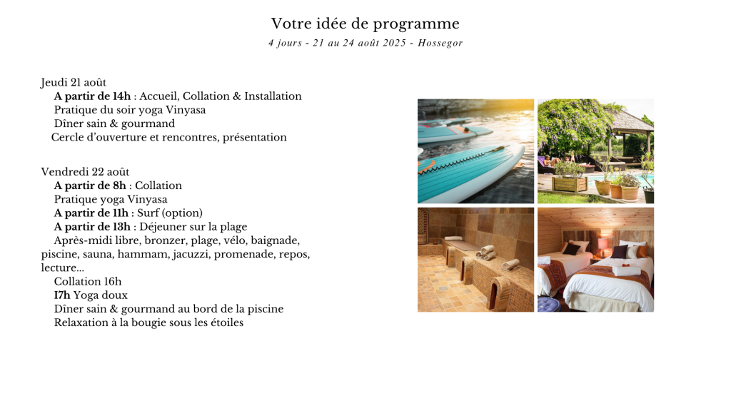 Edition 2025 pour vous donner une idée du séjour